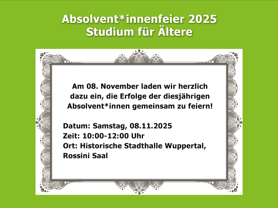 Einladung zur Absolvent*innenfeier im Studium für Ältere
