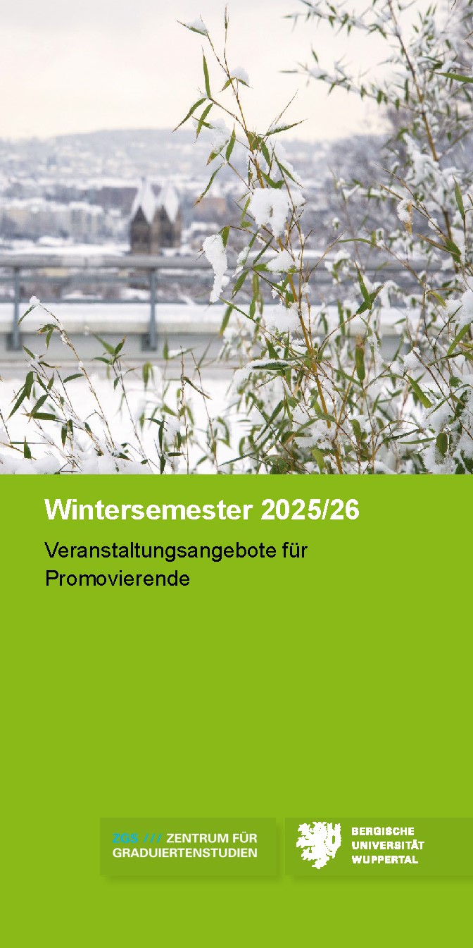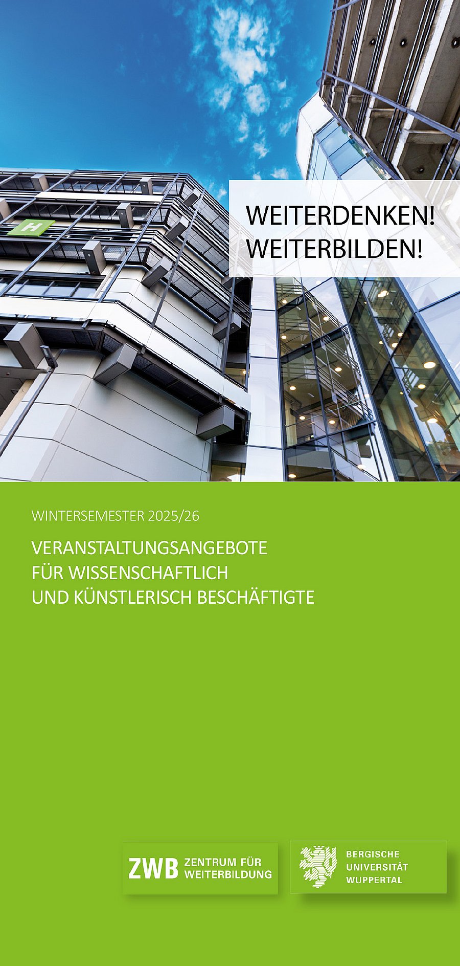 Auch für das Wintersemester 2025/2026 haben wir gemeinsam mit dem Zentrum für Graduiertenstudien (ZGS) entschieden, alternativ zu unserer Weiterbildungsbroschüre die gewohnte Zusammenschau aller Weiterbildungsangebote der BUW erneut in Form eines Online-Flyers zu veröffentlichen. Dieser präsentiert die jeweiligen Veranstaltungsseiten der Anbieter in Form einer Linksammlung, die nachfolgend in gekürzter Form zusammengefasst wird:
