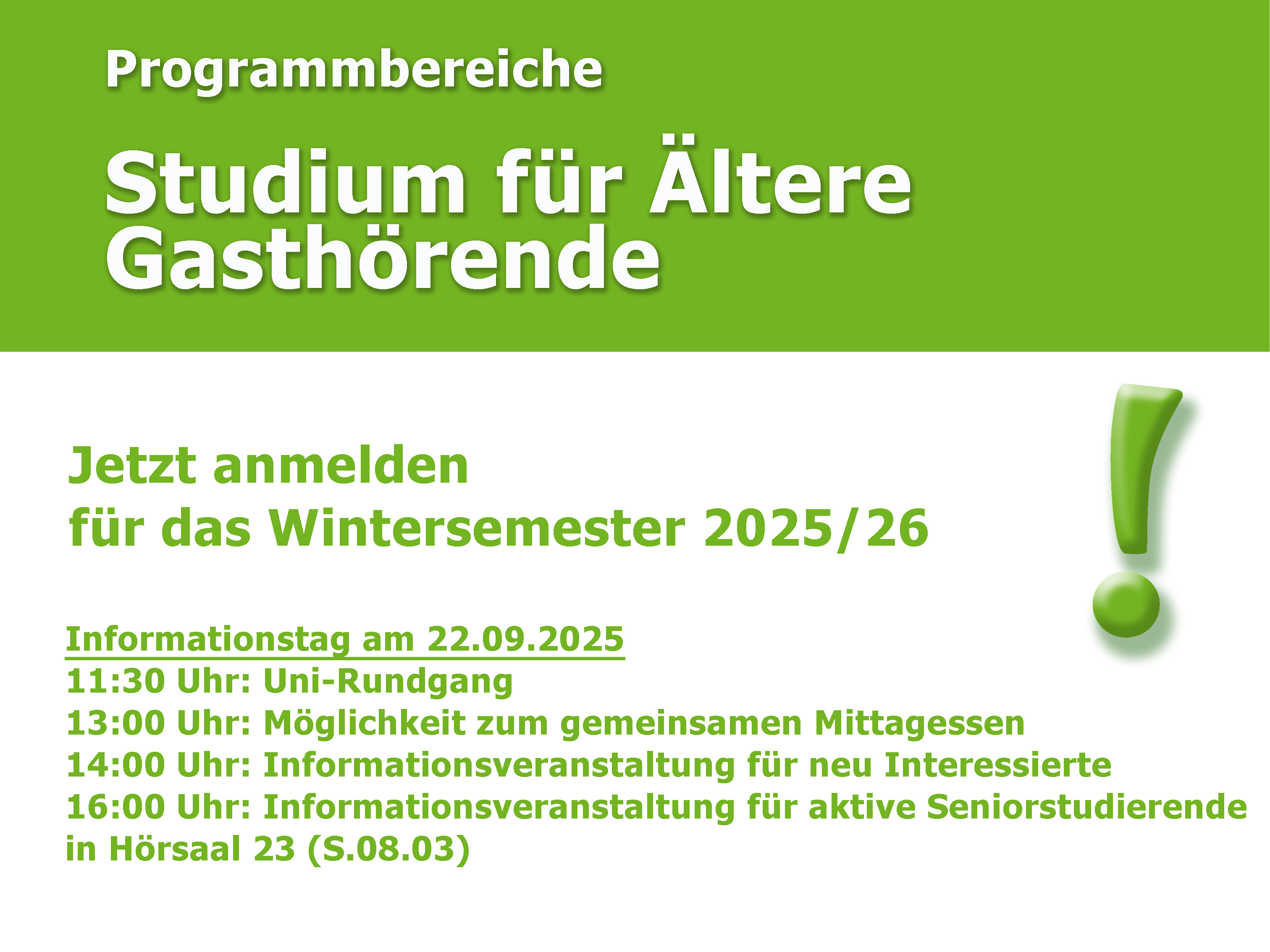 Informationstag für die Programmbereiche Studium für Ältere und Gasthörende am 22.09.25