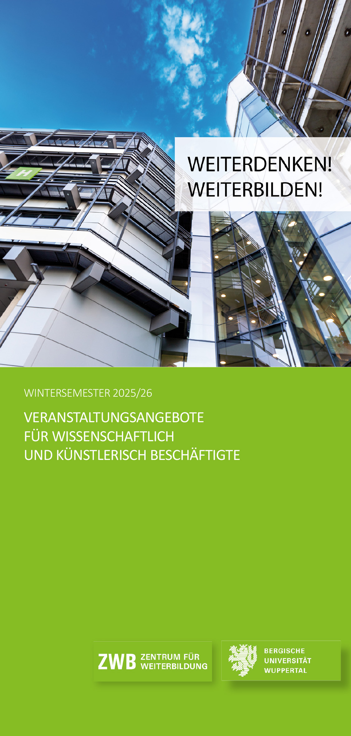 Auch für das Wintersemester 2025/2026 haben wir gemeinsam mit dem Zentrum für Graduiertenstudien (ZGS) entschieden, alternativ zu unserer Weiterbildungsbroschüre die gewohnte Zusammenschau aller Weiterbildungsangebote der BUW erneut in Form eines Online-Flyers zu veröffentlichen. Dieser präsentiert die jeweiligen Veranstaltungsseiten der Anbieter in Form einer Linksammlung, die nachfolgend in gekürzter Form zusammengefasst wird: